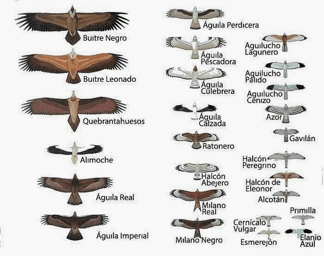 Excelente trabajo de recopilación y de detalle realizado por el propietario del blog «EntrepinosySembrados» sobre la identificación, características y detalles de las aves rapaces de la península.