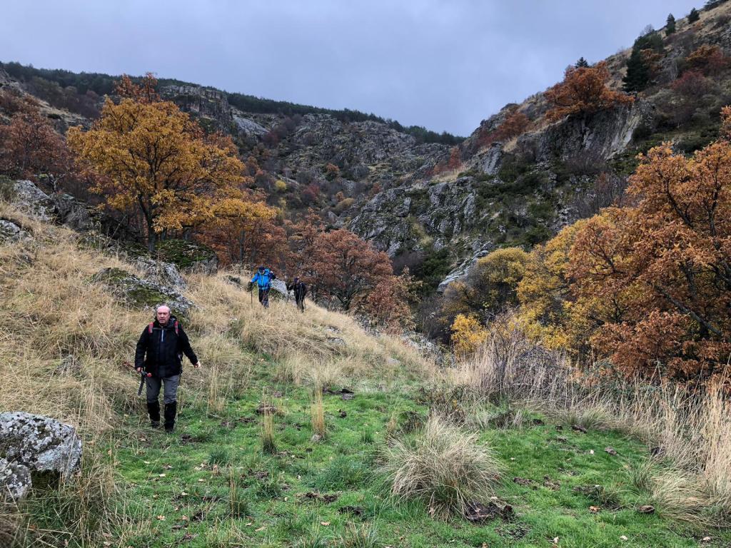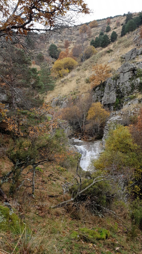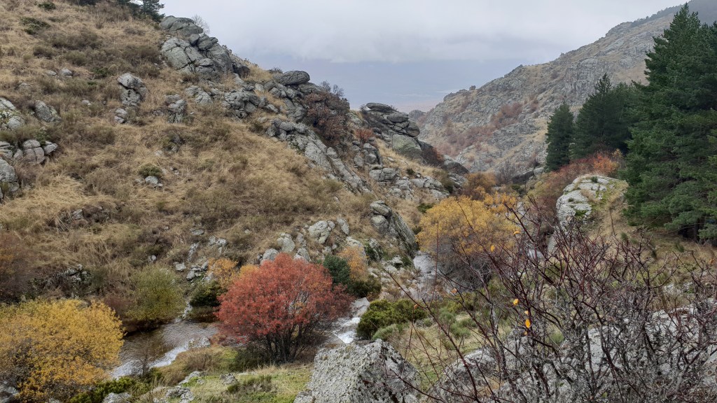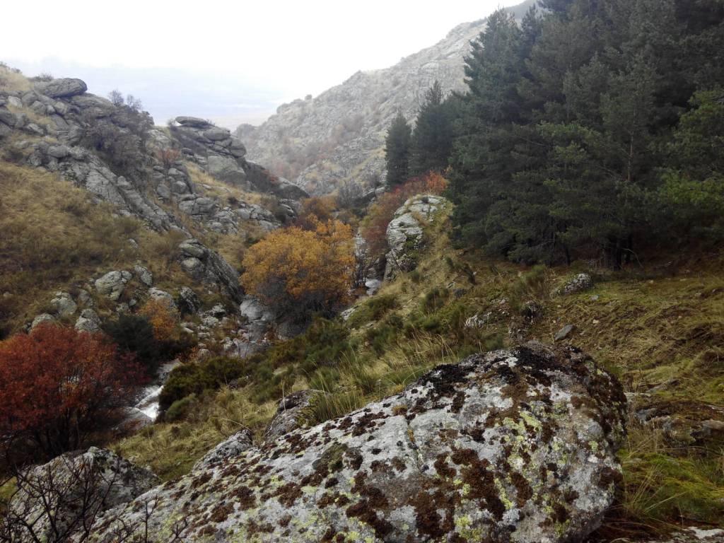 Ruta circular realizada el día 22 de noviembre de 2018 con tiempo cubierto pero sin frio. Arrancamos desde Alameda del Valle con la esperanza de una buena ruta. Tomamos el PR12 para subir por un amplio camino hacia la Majada del Cojo y su refugio. Alcanzado este continuamos hacia la parte mas alta de la ruta en las laderas de las Peñas Vivorizas. En este punto hay que dejar el PR12 pero nos pasamos un poco siguiendo el PR por lo que nos toco desandar y atajar por la zona de pinos repoblados y campo a través buscar el sendero de descenso junto al arroyo de la Susilla. Es un senderillo estrecho que desciende junto al rio hasta que este se une al arroyo de Santa Ana que tiene unas vistas impresionantes y con todas las tonalidades del otoño está precioso. No es una bajada complicada pero hay que tener precaución en los pasos por piedras si está mojado. Además hay algún tramo en el que el sendero se pierde con lo que la ayuda del GPS es de agradecer. Hay imágenes preciosas que la cámara no llega a reflejar. En la parte final visitamos la ermita de Santa Ana y desde allí rematamos la ruta de nuevo en Alameda del Valle. Nos espera un buen cocido de Emilia en Lozoya.