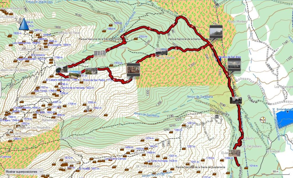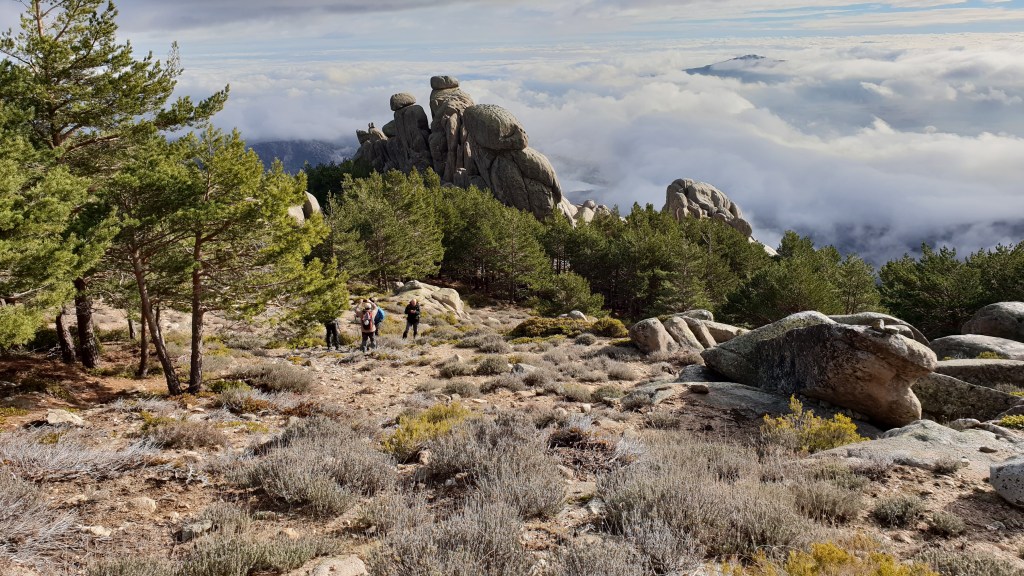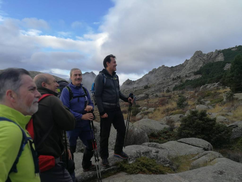 Ruta circular realizada el día 20 de diciembre de 2018. Como dice Pedro, ruta corta pero intensa con 820 metros de desnivel y menos de 13 Km. Partimos de una pequeña zona de aparcamiento cercana al Canto del Berrueco, entre Manzanares y Soto del Real. Arrancamos comodamente por la senda de la Abutarda unos 2,5 Km donde la dejamos por la derecha para coger un sendero que nos deberá llevar hacia el collado Ventana, ya en la parte alta de la Pedriza. El sendero a medida que avanzamos se hace mas complicado y sobre todo facil de perder. Hay que estar muy pendiente al track y aun así…. Total que tras 1,5 Km de subida nos desviamos a la izquierda teniendo posteriormente que corregir puro campo a través por la zona de pinares. Hay que tener cuidado porque es facil encontrar zonas de rocas que te obliguen a rodear. No obstante, aunque la ruta se haga mas exigente, descubres nuevas zonas, vistas y rincones que hacen que merezca la pena el esfuerzo adicional. Finalemente llegamos al collado de la Ventana con sus preciosas vistas de la Pedriza. El regreso ya sencillo por El Lomo. Por comentar «lo robustas que son las bicicletas eléctricas, aguantan mucho, mucho peso». Por último, la comida la hicimos en la Estación de Renfe de Soto del Real y fue una pedazo de comida….