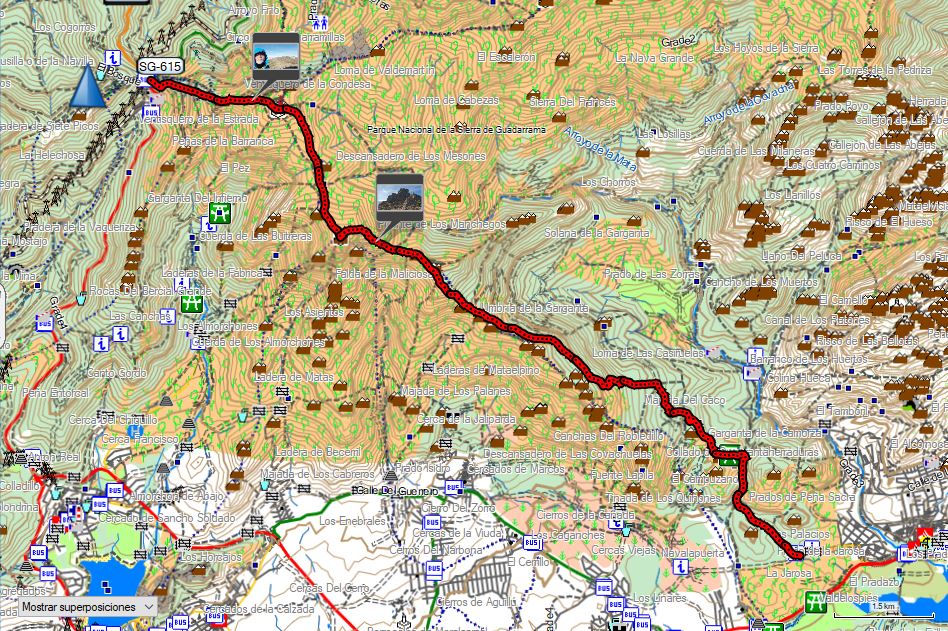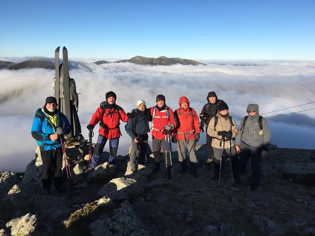 Con los frios del principio de año pero con un sol que incluso calentaba iniciamos esta ruta desde el puerto de Navacerrada. Dada mi bisoñez se me ocurrió preguntar por donde ibamos a subir a la Bola. Sonrisa generalizada y respuesta al unísono, «todo tieso». Me debió cambiar la cara pero con un poco de ánimo y una palmadita en la espalda comenzamos a subir por las vallas que limitan por la derecha la pista de sky. Llegar, llegamos todos arriba para hacernos la foto de rigor junto a la Virgen de las Nieves. A partir de ahí llegamos a la Bola facilmente y continuamos por un camino perfectamente marcado que baja hasta el collado del Piornal (PRM 16) y sube hasta la cima de La Maliciosa. Encaminamos la cuerda de los Porrones, una clásica de la sierra de Guadarrama, que nos proporciona mágnidicas vistas de Cuerda Larga, de La Pedriza y de los pueblos de la zona. Así continuaremos por el PR16 hasta llegar a la carretera que sube desde Miraflores a Cantocochino (La Pedriza). Ya solo nos quedó bajar hasta el parking del centro de interpretación de la Pedriza.