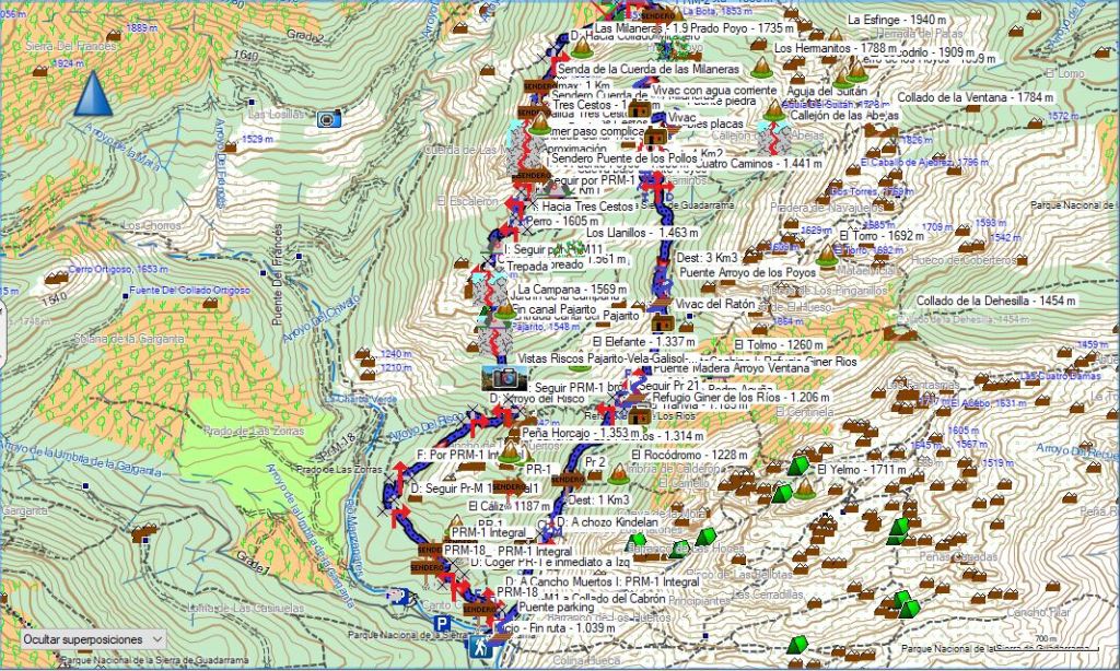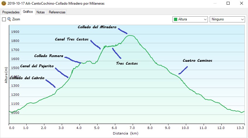 La Pedriza (Cantocochino) – Collado del Cabrón – Canal del Pajarito – Collado de la Romera – Canal de los Tres Cestos – Collado del Miradero – Cuatro Caminos – Cantocochino