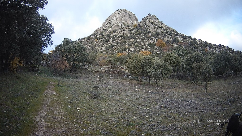 Partimos desde la Cabrera y subimos al Pico de la Miel por el PR, ruta habitual de subida muy corta y con fuerte desnivel pero que se supera despacito y con buena letra. Una vez en la cuerda decidimos subir al pico por la cara norte, cosa que tras algún pequeño enredo hicimos sin complicaciones. Eso si hay que tener cuidado en algún tramo con placas mojadas que pueden dar un susto. Visto esto bajamos del pico de la Miel por su cara oeste, que resulta más sencilla. Con algún pequeño 😡refunfuño por pasar dos veces por el mismo sitio😡 cogemos camino hacia el Espaldar por el PR. Con cuidado de no pasarnos giramos al noroeste hacia la Cabeza Mala. Pasamos el depósito del mismo nombre, alcanzamos la A1 y cruzamos al otro lado para encarar los picos del Pesebre, Las Vacas y Las Cabreras. Y aquí comienza la parte singular de la ruta. Subimos fácilmente hasta una cantera abandonada por un camino en desuso, y pasada esta el camino desaparece. A partir de aquí puro campo través en un terreno muy rocoso y con vegetación (mucha zarza). Así que el tramo del track, desde un poco más adelante de la cantera que está en la ladera oeste del Pico de Pesebre hasta el Collado de Las Cabreras, es complicado de seguir ya que no hay ni una marca/hitos que te orienten (o nosotros no los vimos). Además es todo rocas, que se pueden subir razonablemente en seco pero en mojado hay que descartar subir al Pesebre y al cerro de Vacas.