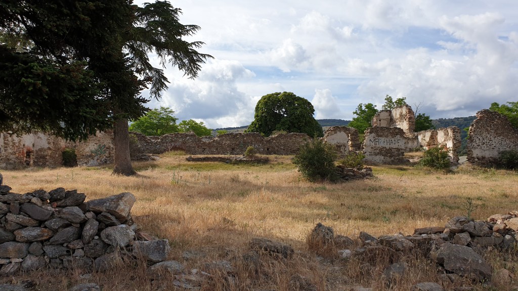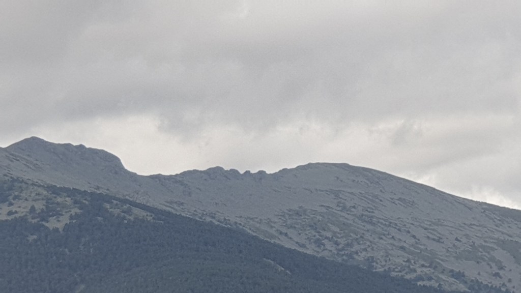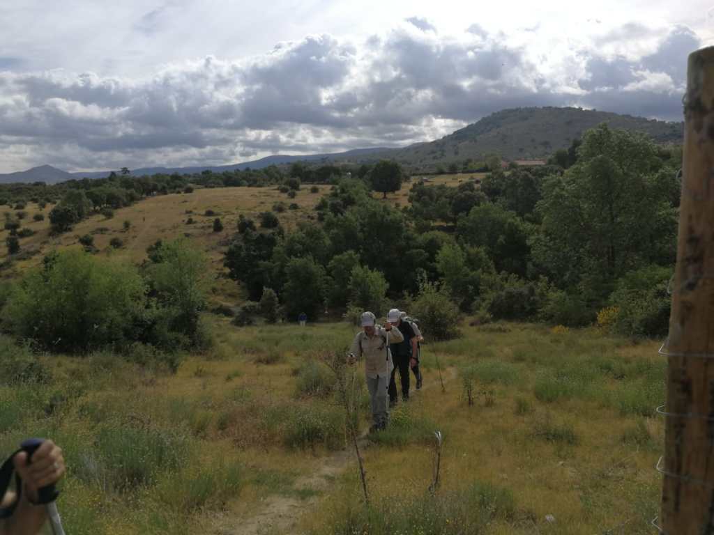 Volviendo a la ruta, partimos de del pueblo de Valsain y nuestro primer paso es subir a la Cruz de la Gallega, cruce de caminos y primer alto del día, desde el que nos dirigimos al esquileo de Santillana, antiguas casas donde se esquilaba al ganado y se comerciaba con la lana. Su importancia en tiempos venía por estar situada en la cañada real soriana o de las merinas. Solo quedan las ruinas. Nos dirigimos hacia el cerro que vemos al sur, Cabeza Grande, lugar destacado por las vistas de la cuerda de la Mujer Muerta desde el norte y por ser uno de los enclaves fortificados de la zona durante la guerra civil. Descendemos hacia Majadas Llanas y el arroyo de Valdeconejos hasta coger el camino del azud que trnsita pegado al canal del rio Frio. Hacemos nuestro alto para el Angelus en el decantadero, donde alguno se moja los pies, y tras reponer fuerzas subimos a la fuente Fria para coger la pista que nos lleva hasta la fuente de los Pastores, tercera altura de la ruta. He de decir que llegamos al lugar marcado como la fuente, encontramos el cartel que lo indicaba, pero no encontré ninguna fuente.