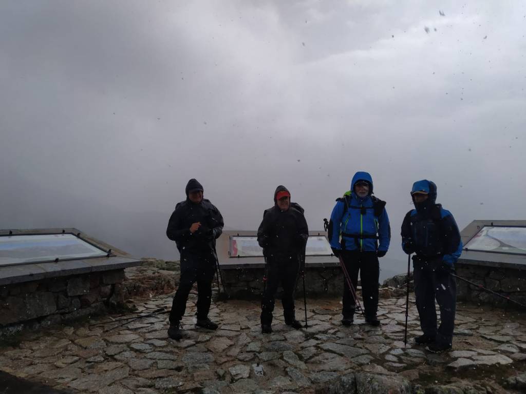 Llegamos al mirador de Las Canchas con mucho aire y lluvia con lo que parada rápida y descendimos por la pista forestal hasta llegar al cruce de esta con la Senda Bambi. Llegamos al Ventorrillo «saliendo el sol». La montaña es así.