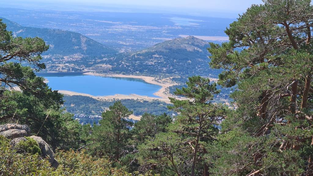 La marcha era tan buena que, al pie de las torretas de la bola del mundo, alguien propuso alargar la ruta subiendo a Cabeza de Hierro, a lo cual, otro lo puso en su sitio. No debemos ser tan optimistas, que la ruta ya era exigente y después se nos puede complicar. Así que seguimos hacia el camino de la tubería que nos llevaría al mirador de las Canchas, que tenía bastantes visitantes. Un padre nos preguntó si podía seguir con un carro y un niño pequeño por la ruta por la cual íbamos a bajar nosotros. Pedro le dijo que si, ya sabemos que a él no se le resiste nada.