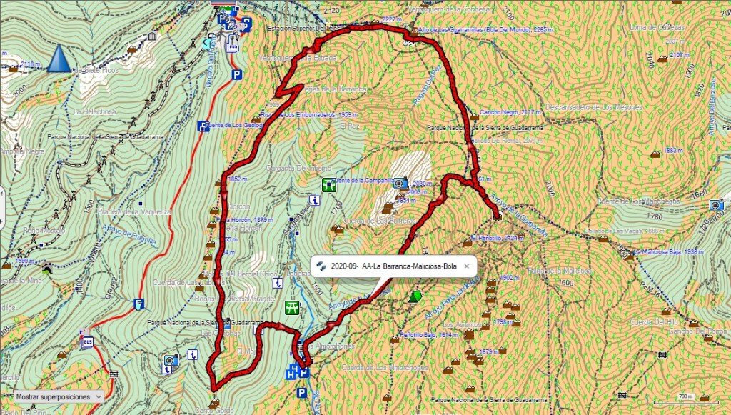 La Barranca – La Maliciosa – La Bola – Emburriaderos – Senda de la Tubería – Mirador de la Barranca – Camino Ortiz
