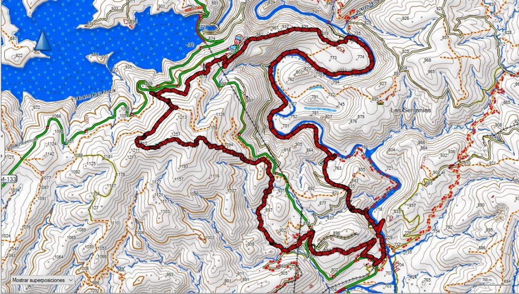 Ya bajando teníamos un dilema con la forma que hacía la carretera que rodeaba el embalse. Parecía que se desdoblaba viéndola dese arriba. La realizad es que eran dos carreteras con dos destinos distintos.